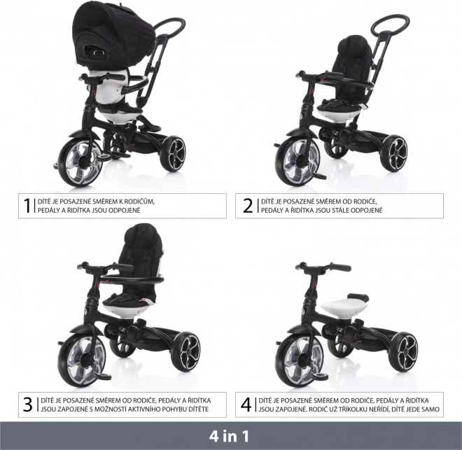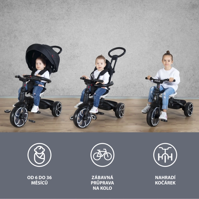 Elegante driewieler Prime voor kinderen van 6-36 maanden met draaibaar zitje en UV-dakje. Draagvermogen 25 kg, 4 gebruiksmodi.