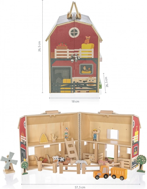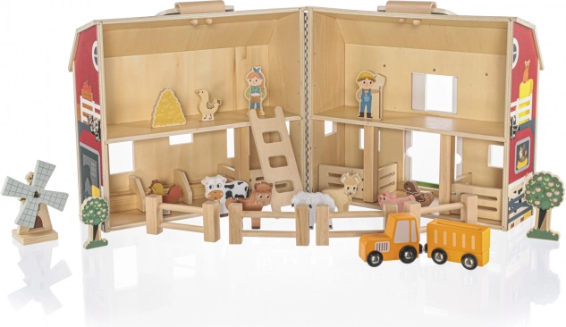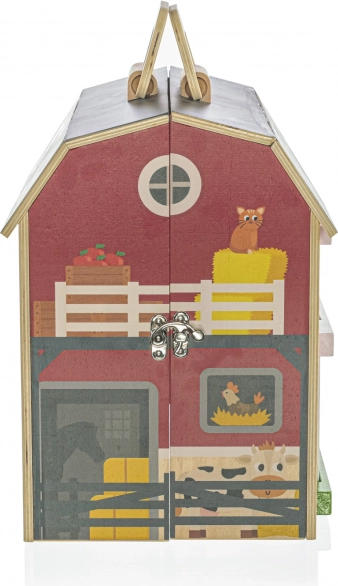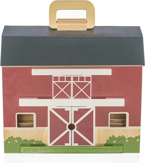 Prachtige houten boerderij met handvat voor eenvoudig meenemen en spelen waar je maar wilt.