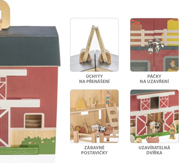 Het speelgoed is ontworpen om intensief spel te weerstaan en is geschikt voor kinderen vanaf drie jaar. Bevat een houten schuur met realistische dierenfiguren. Met dit speelgoed kunnen kinderen hun verbeelding, coördinatie en sociale interactie ontwikkelen.