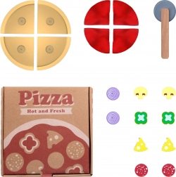 Houten speelgoed voor kinderen is een realistische pizzaset die vermaakt en de creativiteit van kinderen bevordert. Het veilige speelgoed bestaat uit 20 elementen, waaronder een houten pizzasnijder en ingrediënten met klittenband. De onderdelen hebben heldere kleuren, geen scherpe randen en zijn gemaakt van hoogwaardig natuurlijk hout dat is geverfd met niet-giftige verf.