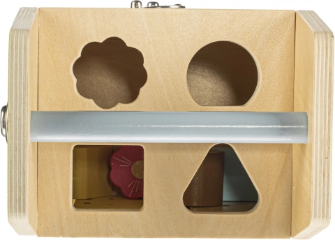 Dankzij het houten handvat kunt u de kubus gemakkelijk meenemen op bezoek of op uitstap, en zo uw kleine avonturier perfect bezighouden.