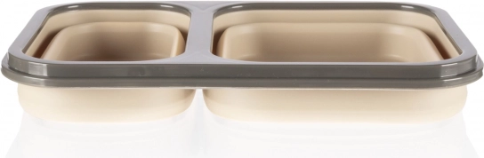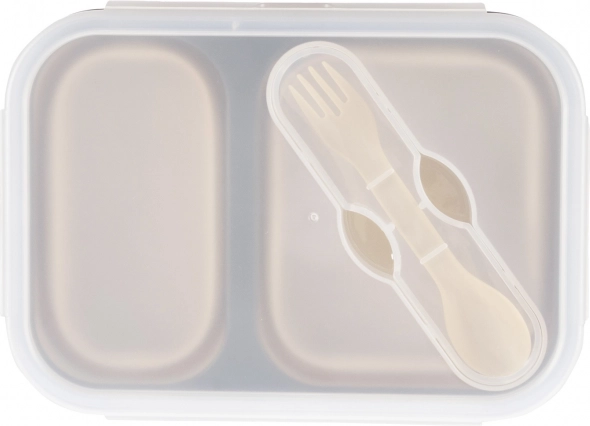 Siliconen lunchbox met bestek groot, zandbeige