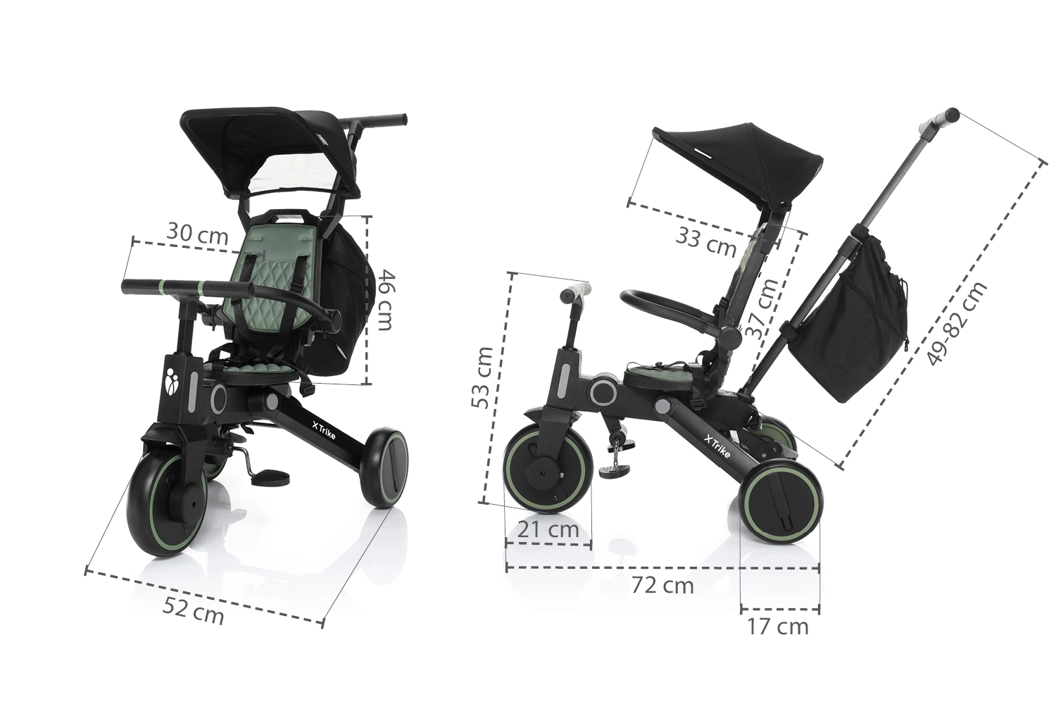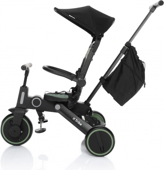 De multifunctionele kinderdriewieler X Trike 7-in-1 is een slim alternatief voor een kinderwagen en groeit met je kind mee. Hij biedt rijden met de rijrichting mee of ertegenin, bediening met een duwstang en eenvoudig opvouwen tot compacte afmetingen. Voor maximaal comfort en veiligheid heeft hij een gepolsterde zitting, 5-puntsgordel, verstelbare veiligheidsbeugel, zonnescherm en een voetrem. De afneembare pedalen kunnen worden gebruikt als pedalen of als voetensteun.