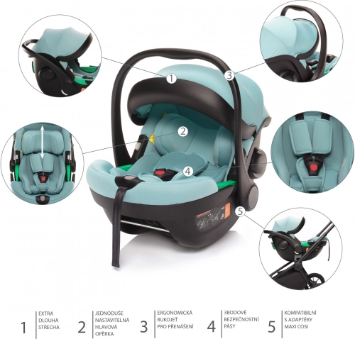Het XM-autostoeltje is uitgerust met extra SIP-bescherming bij een zijdelingse aanrijding. Installatie van het autostoeltje in de auto via ISOFIX op een basis of met de autogordel. Handgrepen aan de zijkanten van het autostoeltje vergemakkelijken de grip en hantering bij het losnemen van het kinderwagenframe. Het autostoeltje is compatibel met Maxi-Cosi adapters.