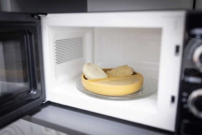 Siliconen verdeeld bord met zuignap, Mosterdgeel