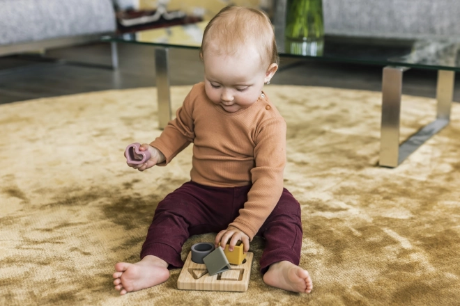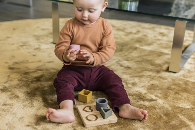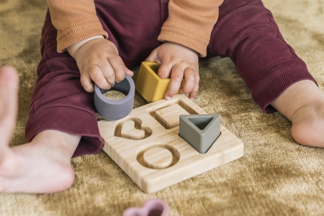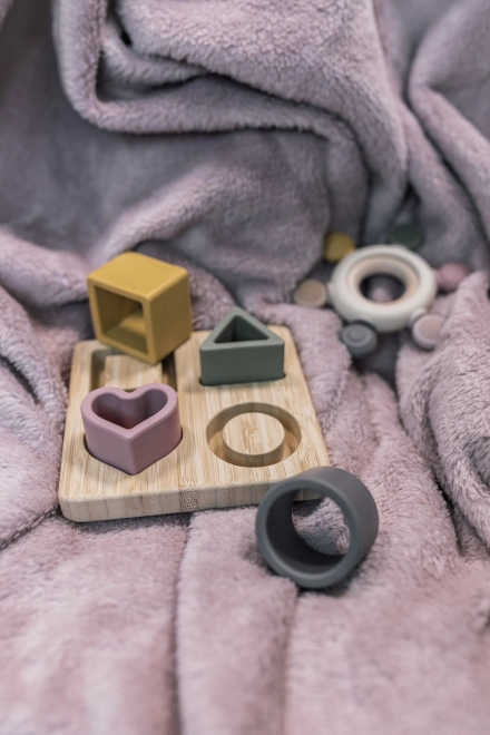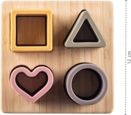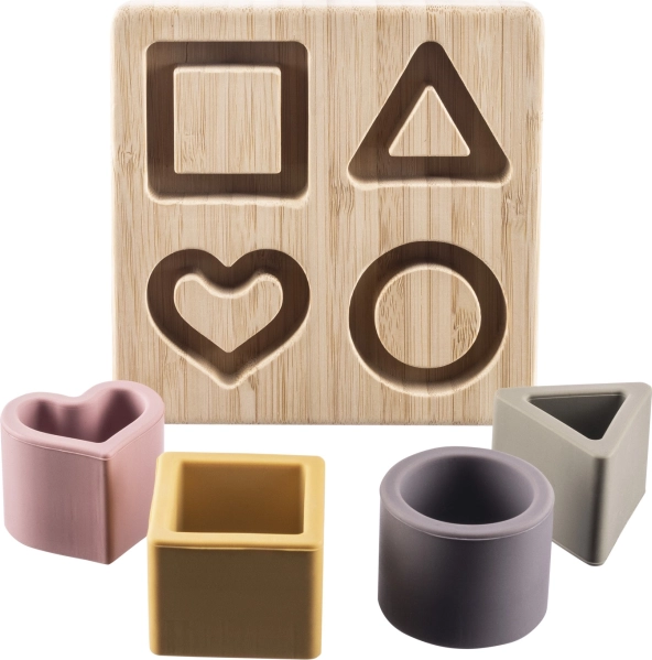 De siliconen puzzels in de vorm van een kubus, driehoek, cirkel en hart zijn gemaakt van veilig voedselveilig siliconen, dat niet giftig is en bestand tegen breuk. Voor kleine kinderen voelt siliconen natuurlijker aan dan plastic of metaal. Zeer prettig om op te kauwen en ter stimulatie van vermoeide en gevoelige tandvlees tijdens het doorkomen van tandjes.