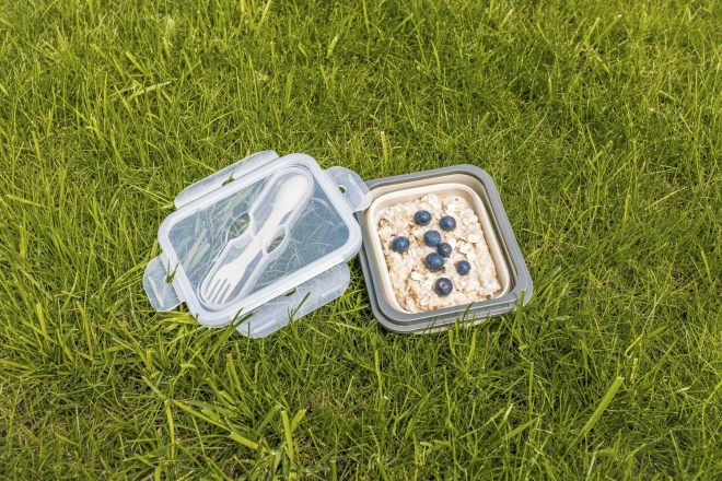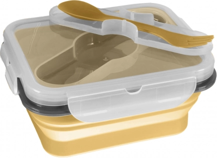 Siliconen snackbox met bestek klein, Mosterdgeel