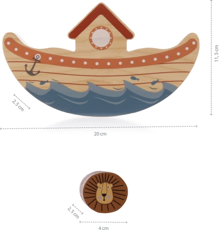 Speel alleen of met meer personen: kinderen, volwassenen, oma’s en opa’s – dit leuke spel is voor iedereen! Laad alle houten diertjes stuk voor stuk aan boord, maar pas op! Hoe meer dieren er op het dek staan, hoe groter de kans dat de ark kantelt of dat de dieren overboord vallen!
