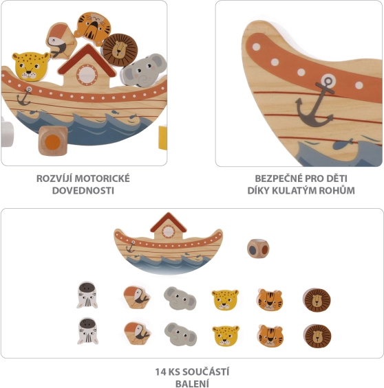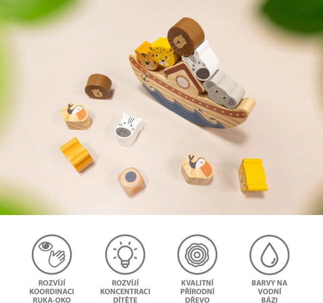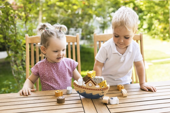 Laat kinderen ontdekken hoe zwaartekracht werkt en ruimtelijk inzicht ontwikkelen. Op een speelse manier leren ze objecten zo te stapelen dat ze in balans blijven. Het spel is ook geschikt voor één speler. Wanneer er met meerdere spelers wordt gespeeld, verliest degene bij wie de dieren als eerste van de ark vallen.