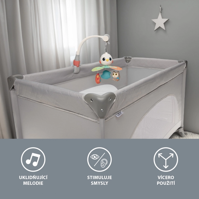 De mobiel stimuleert de zintuigen van je kind met een kleurrijke mix en patronen aan de onderzijde van de speeltjes. Biedt prikkels voor zicht en gehoor.