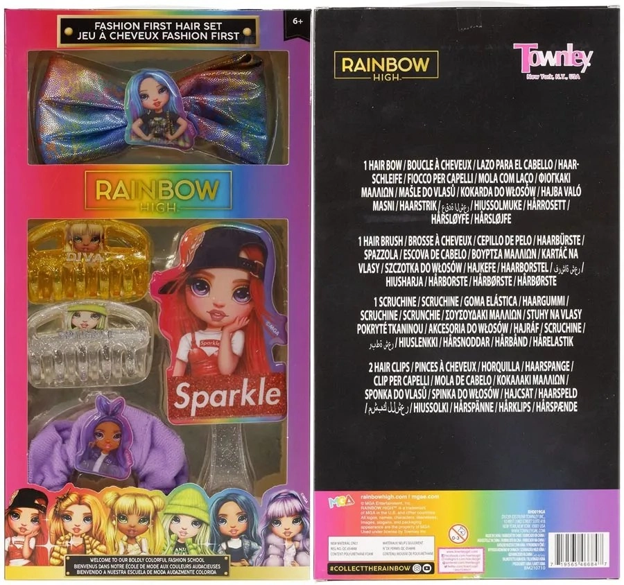 Ontdek leuk kammen en stylen met het iconische RAINBOW HIGH regenboogmotief. Deze set combineert praktische bruikbaarheid met een modieuze look, zodat kinderen zowel eenvoudige als speelse kapsels kunnen maken, thuis en onderweg.