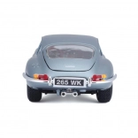 Metalen automodel 1:18 Bburago 18-12044 Jaguar E-type Coupé, niet alleen voor verzamelaars. Het model heeft te openen deuren en motorkap, en het sturen van de wielen via het stuur is volledig functioneel. De kleur van het model is metallic zilverblauw.