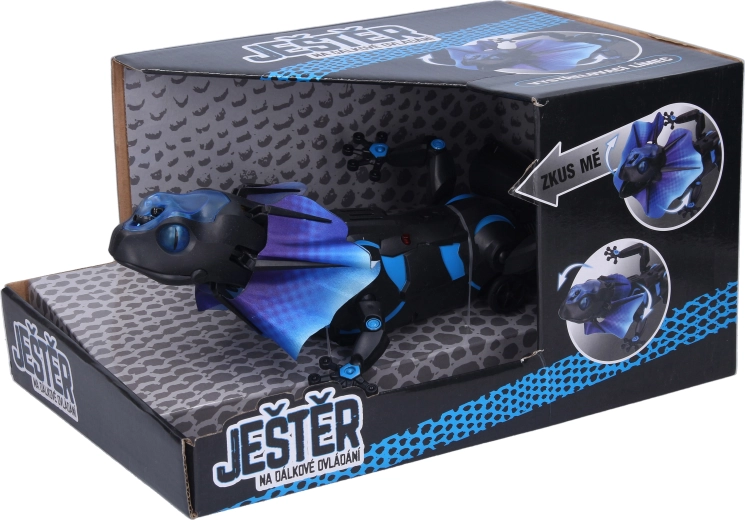 Realistische RC-kraaghagedis brengt veel plezier voor kinderen vanaf 6 jaar. Bedien hem met de I/R-afstandsbediening, geniet van geluids- en lichteffecten, vooruit- en achteruitbeweging met draaien en authentiek gedrag. Het speelgoed heeft een Tsjechische verpakking en bereikt een lengte van 41 cm inclusief staart.
