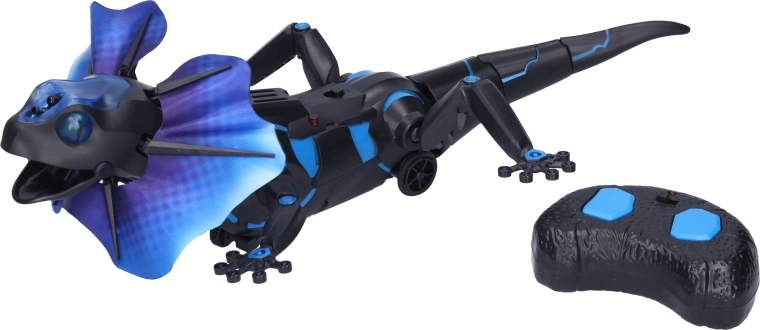 De afstandsbediende kraaghagedis ziet eruit als een echte en beweegt ook zo. Dankzij de infraroodbediening is hij gemakkelijk te sturen thuis en in kameromstandigheden. Realistische lichteffecten en geluidseffecten vergroten het speelplezier en stimuleren de verbeelding van kinderen.