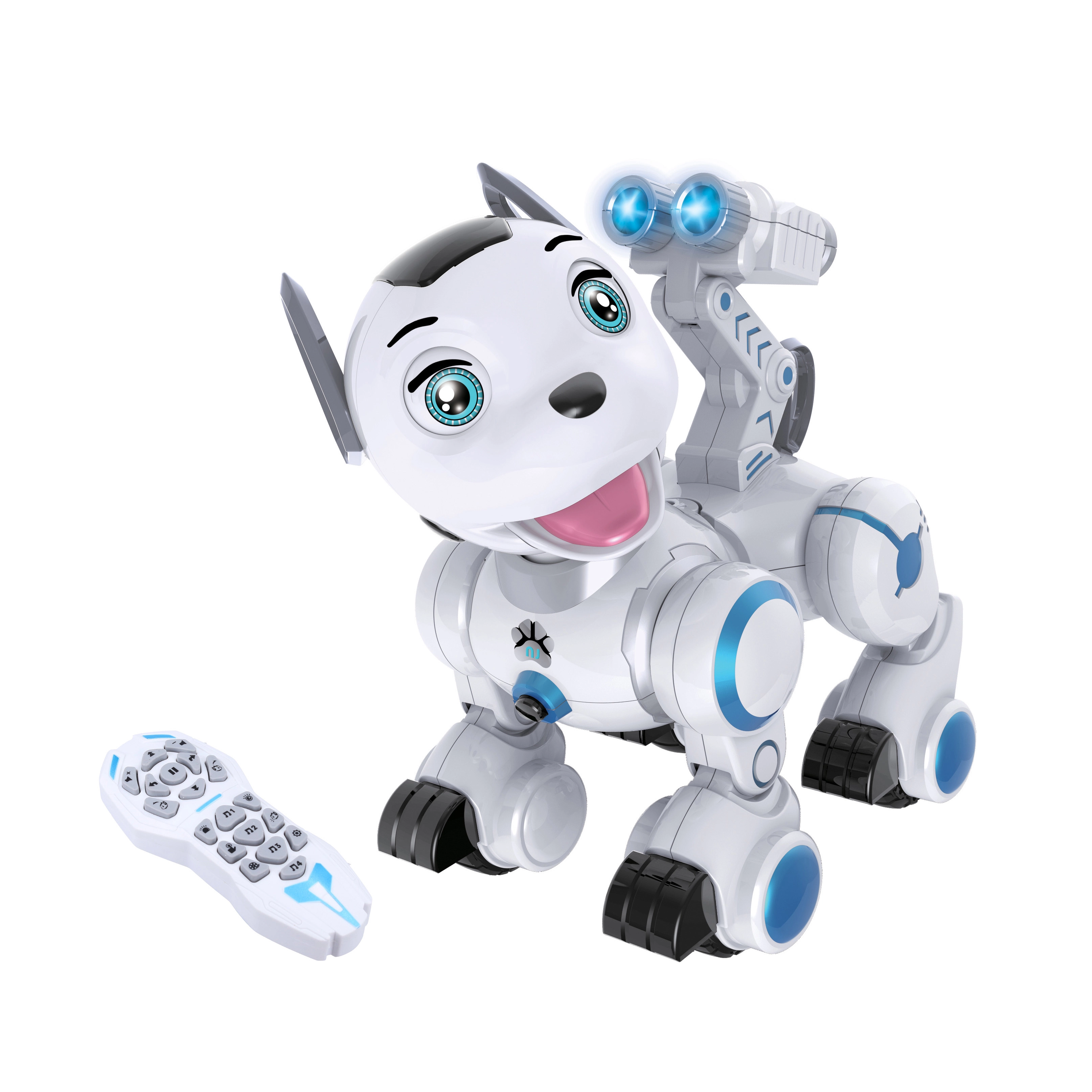 Deze schattige op afstand bestuurbare robotische hond is een geweldige speelkameraad voor kinderen vanaf 3 jaar. Hij kan vooruit en achteruit lopen, sturen, zijn hoofd draaien, blaffen en janken en verrast met licht- en geluidseffecten. Dankzij het dansen en grappige reacties verovert hij snel de harten van jong en oud. Hij wordt gemakkelijk via USB opgeladen en is klaar om zij aan zij jouw terrein te bewaken.