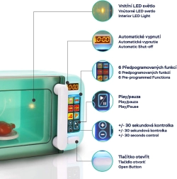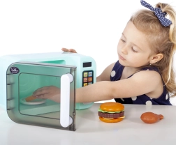 Decoreer de keuken van je kleine chef-kok met een luxe kindermagnetron met touchpaneel. Deze interactieve magnetron maakt echte geluiden en geeft licht. De programma’s omvatten het draaien van het bord met een nepmaaltijd binnenin de magnetron.