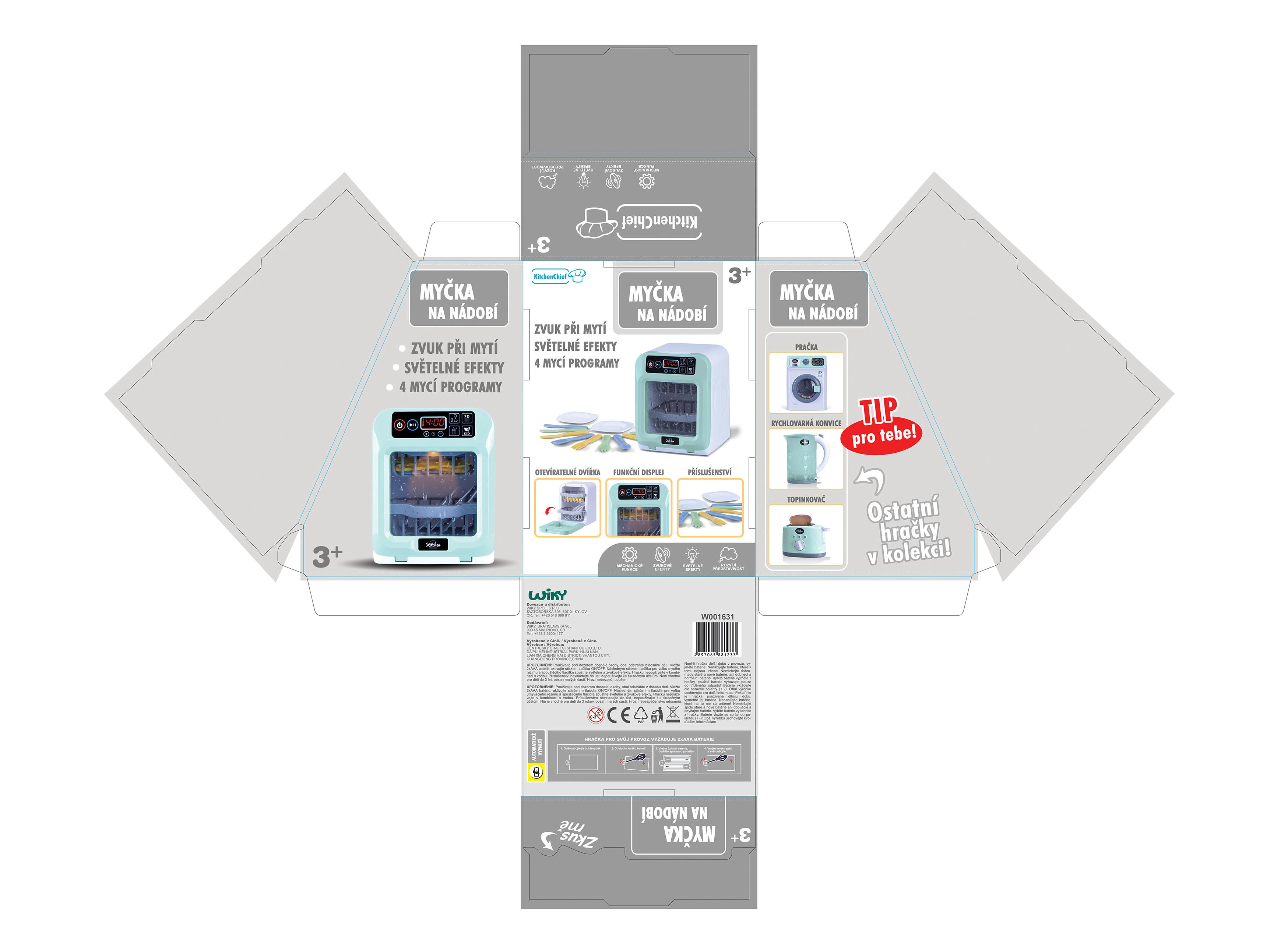 Kies uit 4 wasprogramma’s of stel zelf de tijd in naar behoefte. De afwasmachine is direct klaar voor gebruik – 2× AAA-batterijen zijn inbegrepen. Het perfecte cadeau dat vermaakt en helpt orde in het keukentje te houden.