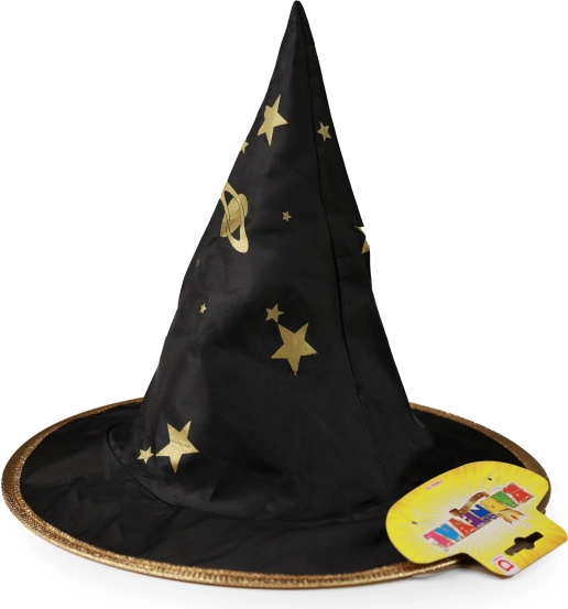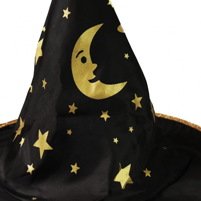 Deze klassieke toverhoed met elegante gouden motieven van sterren en manen verleent deelnemers een magische charme.