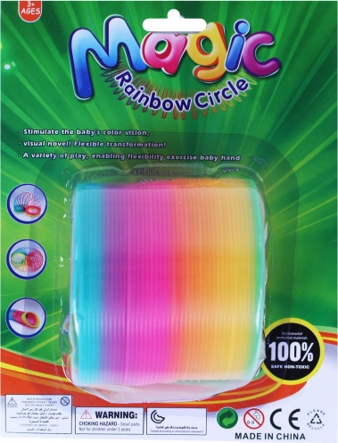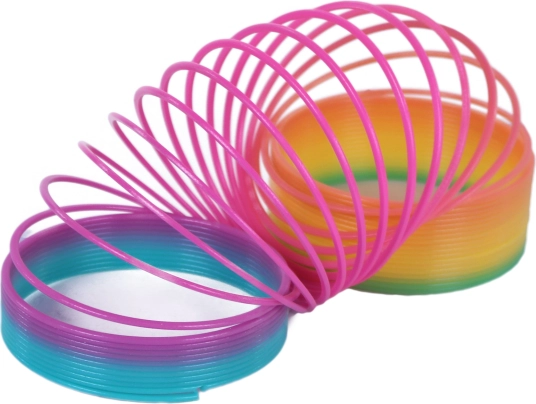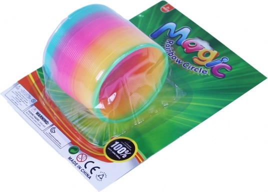 De regenboogkleurige plastic spiraal is tijdloos speelgoed dat generaties blijft vermaken. Dankzij de veerkrachtige constructie beweegt hij gemakkelijk de trap af, stroomt elegant van hand naar hand en creëert opvallende visuele effecten. Perfect voor ontspanning, afleiding en eenvoudige trucjes.