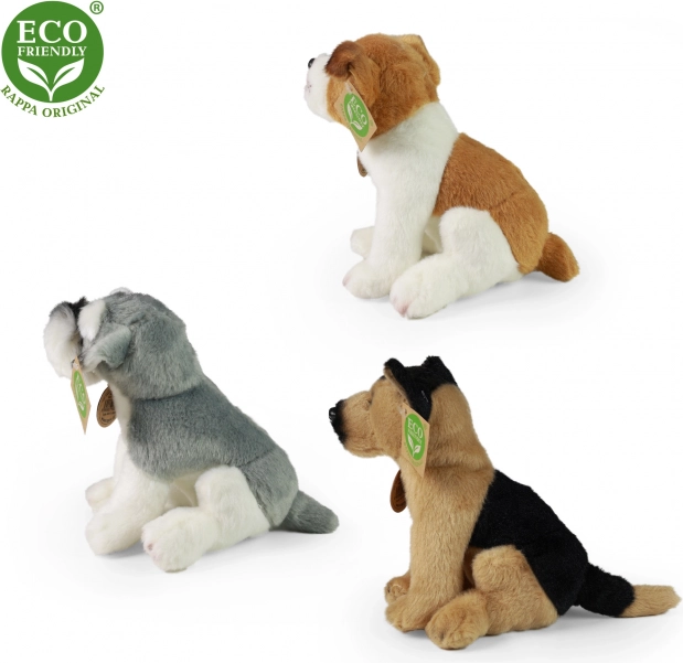 Ontdek een knuffelzachte vriend voor in bed en onderweg. Deze zittende pluchen hond is verkrijgbaar in drie schattige varianten en behoudt dankzij het kwaliteitsmateriaal zijn vorm, zelfs na lang knuffelen. De vulling van gerecyclede PET-flessen is volledig veilig, aanvoelend niet te onderscheiden van gewone vulling en gecertificeerd voor kinderen.