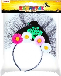 Verrijk je kostuum voor Halloween of carnaval met deze heksenhaarband, versierd met kleurrijke bloemen - de ideale accessoire voor elk feestje.