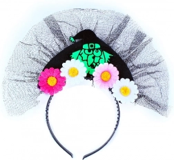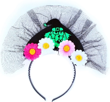 Dit unieke haarbandje combineert een magisch ontwerp met kleurrijke bloemen die je uitstraling charme geven. Het is perfect voor volwassenen die de aandacht willen trekken met Halloween of tijdens carnavalsvieringen.