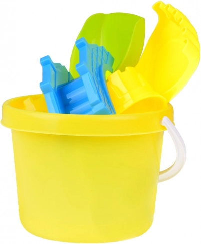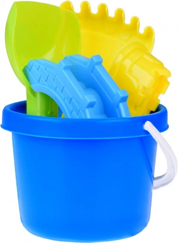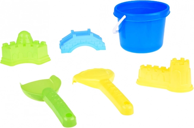 Alles wat kinderen nodig hebben om kastelen en bruggen te bouwen: emmer, schep, hark en 3 vormpjes in levendige kleuren. Stimuleert creatief spel en samenwerking.