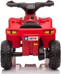 De elektrische kinderquad XH116 is een geweldige keuze voor kinderen die van beweging en avontuur houden. De stevige kunststof constructie, het opvallende rode design en realistische elementen zoals het stuur en de frontgrille stimuleren de fantasie en zorgen voor leuk spel, zowel buiten als binnen.