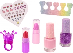 2× nagellak, nagelstickers, vingerspreider, kwastje, 2× mini lippenstift, ring met balsem (kroon)