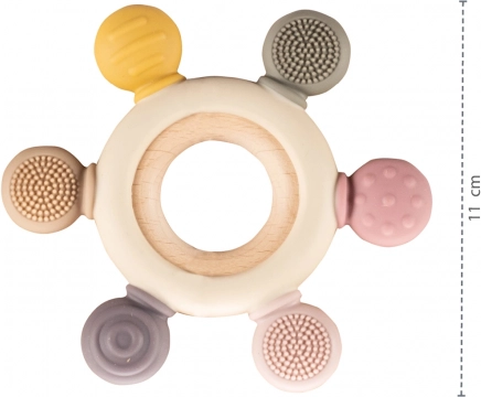 Veilige en leuke bijtring voor de allerkleinsten. De siliconen bijtring, ideaal voor baby’s, biedt verschillende kleurrijke texturen die het geïrriteerde tandvlees van je kind verzachten.