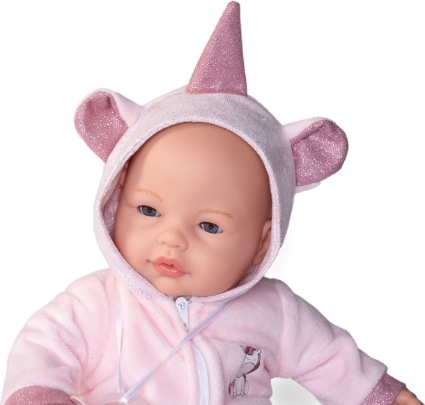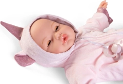 De pop produceert authentieke geluiden van een huilende baby en zegt "mama", "papa" wanneer je de fopspeen verwijdert.