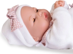 Realistische knipperende pop baby Antonio Juan, die houdt van jouw kinderlijk spel. Deze pop maakt geluiden, haar zachte stoffen lichaam en gedetailleerde afwerking vertegenwoordigen het ideale speelgoed voor de ontwikkeling van zorgvaardigheden.
