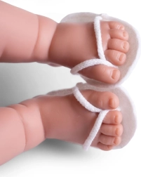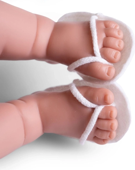 De pop onderscheidt zich door realistische kenmerken in het gezicht en aan de ledematen, waardoor ze als een echte baby oogt.