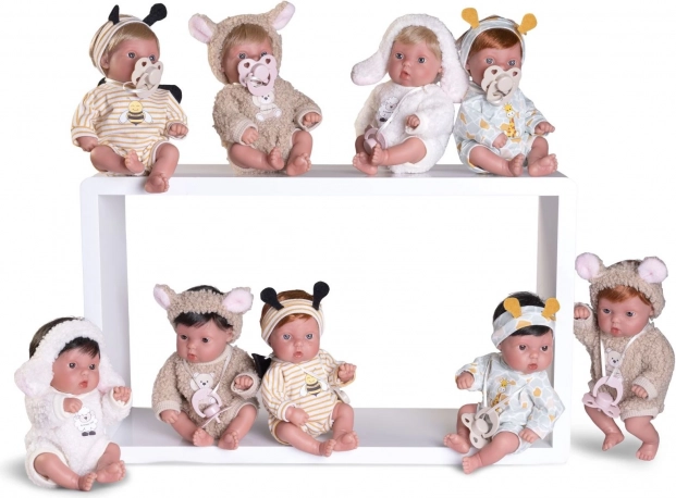 Ontdek de magie van de realistische baby pop Ovečka van Antonio Juan. Deze pop met een volledig vinyl lichaam bootst perfect het realistische uiterlijk van een echte baby na, inclusief kleine plooien en gedetailleerd afgewerkt lichaam. Gemaakt van zacht vinyl, wat haar een uitzonderlijk aangenaam gevoel geeft bij aanraking.