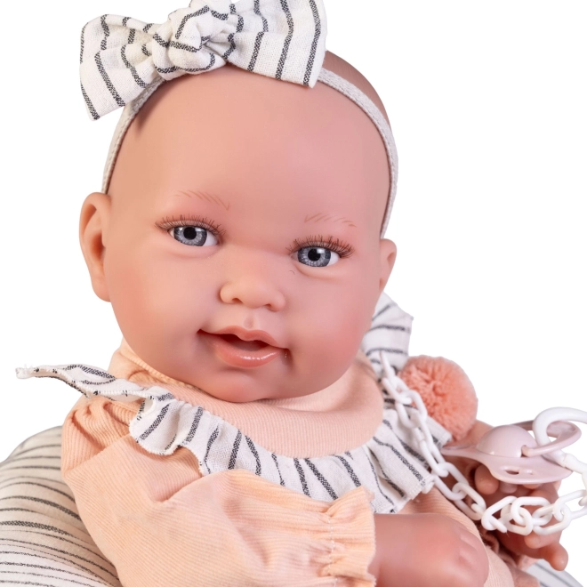 Deze realistische Spaanse babypop vangt alle details van een pasgeborene, inclusief babyrolletjes en verfijnde gelaatstrekken. Ideaal voor kinderen om hun verbeelding en zorgzaamheid te ontwikkelen.