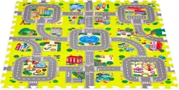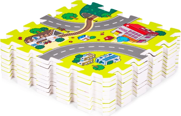 Deze schuimen speelmat met een kleurrijk stads-, wegen- en gebouwenmotief creëert een inspirerende ruimte voor fantasie, leren en motorische ontwikkeling. Ze biedt kinderen een comfortabel en zacht plekje om te spelen, te kruipen en de eerste stapjes te zetten, terwijl ze beschermt tegen kou van de vloer en schokken bij vallen dempt.