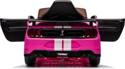 De stijlvolle elektrische kinderauto FORD Mustang GT500 Shelby in roze biedt een realistische sportautolook, te openen deuren en lichteffecten. Dankzij de robuuste constructie en de comfortabele zit zorgt hij voor een veilige en leuke rit voor kinderen. Realistische details, LED-verlichting en te openen deuren stimuleren dagelijks avontuur in de tuin en thuis.