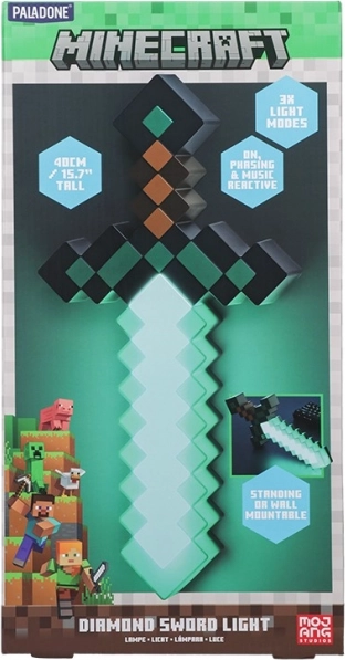 Breng spelatmosfeer in je interieur met dit Minecraft Licht Diamond Sword. Dit verlichte zwaard biedt drie verschillende verlichtingsmodi: continu licht, overvloeiing en muziekreactieve modus. Geweldig voor avondentertainment of als stijlvolle decoratie voor Minecraft-fans. Met een hoogte van 40 cm kan het gemakkelijk op een tafel worden geplaatst of aan de muur worden bevestigd.