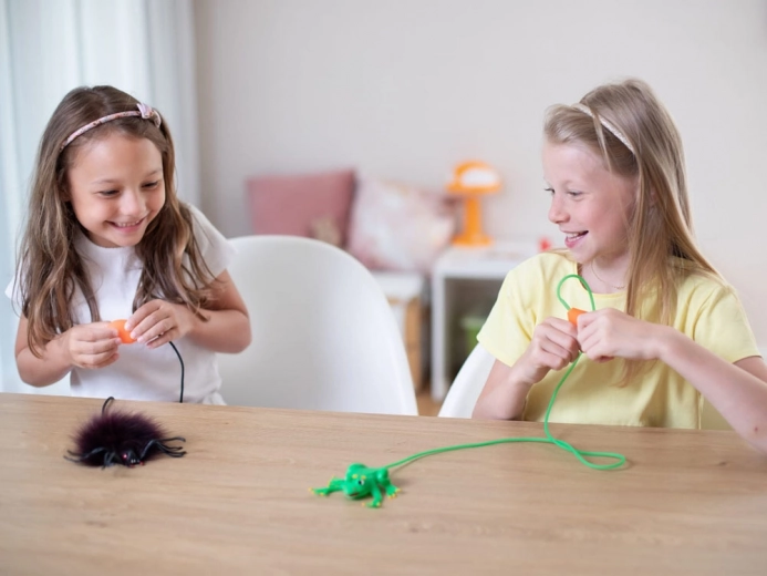 De springende kikker van Tullo is een klassiek stuk speelgoed dat nooit verveelt. Je hoeft alleen maar op het pompje te drukken en de kikker begint vrolijk te hupsen, wat zowel kinderen als volwassenen aan het lachen maakt. Ideaal voor korte speelpauzes, het trainen van reactievermogen en gezellig samenspelen thuis of onderweg.