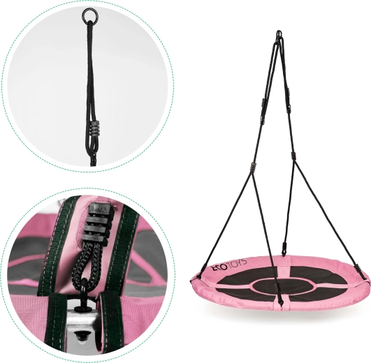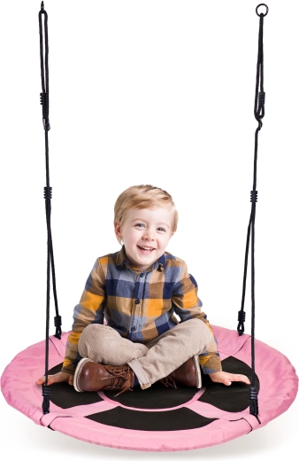 ![]() | SCHOMMEL VOOR KINDEREN VOGELNESTDe tuinschommel van het type vogelnest zorgt voor urenlang speelplezier in de buitenlucht! De ideale oplossing voor de achtertuin of speeltuin. De schommel heeft 2 verstelbare touwen met een dikte van 10 mm van duurzaam materiaal en een comfortabele zitting met een diameter van 100 cm, met schuimbekleding op het frame voor veiligheid en comfort. De touwen zijn uitgerust met metalen ringen voor montage, waardoor de schommel zeer eenvoudig te monteren is. Je kunt haar ophangen aan een schommelrek of aan een boomtak. Dankzij de lengteverstelling van de touwen kan de schommelhoogte ook worden aangepast aan de lengte van de jongste gebruikers, wat het gebruik vergemakkelijkt. |