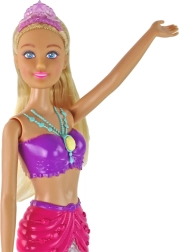 Lang blond haar, een sprankelend kroontje en een roze‑paars kostuum benadrukken haar charme. De pop stimuleert de ontwikkeling van de verbeelding, het vertellen van eigen verhalen en rollenspellen.
