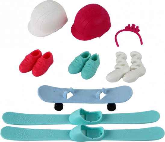 De pop is gekleed in een ski-outfit met een witte helm, witte winterschoenen, ski’s en skistokken. Maar dat is niet alles! De set bevat ook een ballerina-outfit (paarse outfit met een roze tule onderrok, een roze haarelastiek en witte balletschoenen), een skateboard-outfit (blauwe skateboard, gele longsleeve, blauwe broek, roze helm en roze sportschoenen) en een yoga-outfit (comfortabele oranje broek, kleurrijke T-shirt met korte mouwen en mintkleurige sportschoenen).