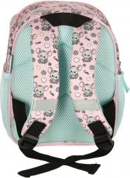 De praktische indeling maakt organiseren makkelijk: één hoofdvak biedt ruimte voor een snack of favoriete knuffel, het voorvak met rits is perfect voor kleinigheden en de twee zijvakken van mesh voor een fles of zakdoekjes. Brede, verstelbare schouderbanden verdelen het gewicht gelijkmatig, zodat de rugzak prettig draagt.