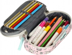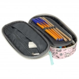 De indeling bestaat uit een verplaatsbare flap met elastische lusjes voor schrijfgerei, een ritsvak voor kleinigheden en nog twee extra vakjes voor perfecte orde. De dubbele rits met ergonomische treklipjes maakt openen ook voor kinderhanden eenvoudig. De stijl wordt afgemaakt door het pluizige diermotief en de bedrukte voering.
