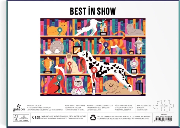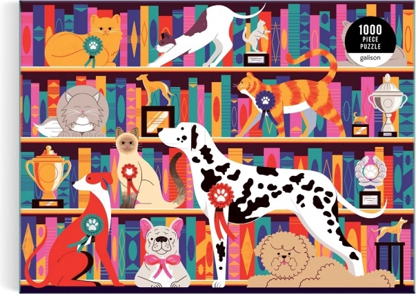 De puzzel biedt levendige illustraties van showhonden en -katten op planken met trofeeën, wat het spel een nieuwe dimensie van plezier geeft.