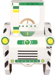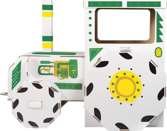 Deze kartonnen tractor voor kinderen stimuleert de fantasie, samen spelen en de ontwikkeling van de fijne motoriek. De lichte maar stevige kartonnen constructie is veilig voor gebruik in huis en klaar voor snelle montage. Het neutrale witte oppervlak met groen‑gele details oogt speels en past gemakkelijk in iedere kinderkamer.