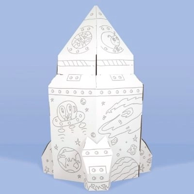 De reusachtige kartonnen ruimteraket bezorgt kinderen uren speelplezier. Dankzij de grote afmetingen 105 × 105 × 169 cm biedt hij veel ruimte om te spelen, is gemaakt van duurzaam karton, heeft een CE-conformiteitsverklaring en is gemaakt in Polen.