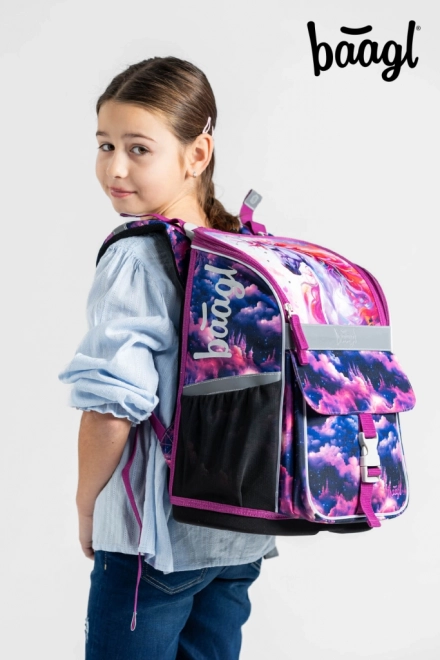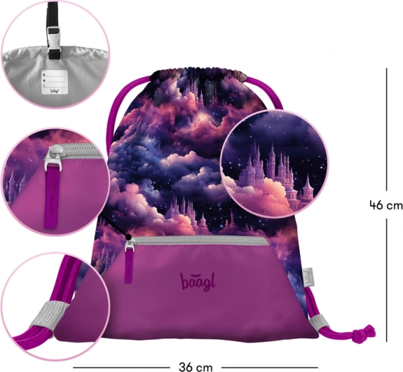 Boekentas, etui en gymsack met afgestemd motief: etui met hoogwaardige YKK-rits en gymsack met ritsvak en karabijnhaak om vast te maken.