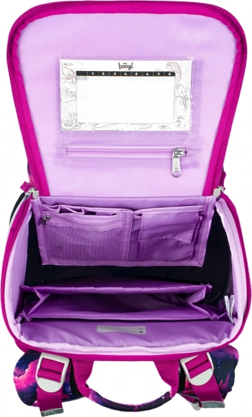 Ontdek een praktische en stijlvolle schoolset voor jonge scholieren. De ergonomische boekentas met het ERGO ADJUSTABLE SYSTEM groeit met het kind mee en garandeert gezond dragen dankzij volledig verstelbare schouder-, borst- en zijcompressieriemen. De lichte en stabiele body behoudt zijn vorm, het geïsoleerde voorvak en de stevige zijvakken bieden plaats aan lunch en fles. De interne organizer met elastiek helpt het gewicht gelijkmatig te verdelen en het transparante vak voor het rooster vereenvoudigt de schoolroutine.