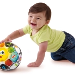 Dankzij zijn mogelijkheden kan de bal voor de kinderen uit rollen, wat hun aandacht trekt en hen motiveert om te observeren, kruipen en spelen. Deze kleurrijke voetbal met verschillende texturen en geluidseffecten ontwikkelt niet alleen zintuiglijk waarnemen, maar biedt ook tactiele stimulatie dankzij de zachte pluchen bekleding. Licht- en geluidseffecten aangevuld met een verlicht gezichtje en oranje knoppen dragen bij aan het leren kennen van kleuren.